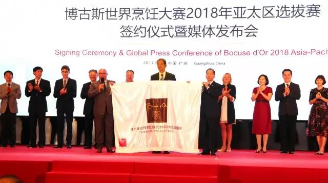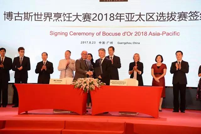 8月23日,嶺南集團(tuán)與法國智奧集團(tuán)在花園酒店正式簽署《合作協(xié)議》,合作舉辦2018年博古斯世界烹飪大賽亞太區(qū)選拔賽。廣州從與新加坡和東京的激烈競爭中脫穎而出,首次成為賽事舉辦城市。廣州市委常委蔡朝林、廣州市商務(wù)委陳杰主任、嶺南集團(tuán)馮勁董事長、法國智奧集團(tuán)吉農(nóng)主席和數(shù)十位國際國內(nèi)餐飲產(chǎn)業(yè)屆嘉賓和新聞媒體代表共同見證了這一具有歷史意義的時(shí)刻,并參加了隨后舉行的全球媒體發(fā)布會。